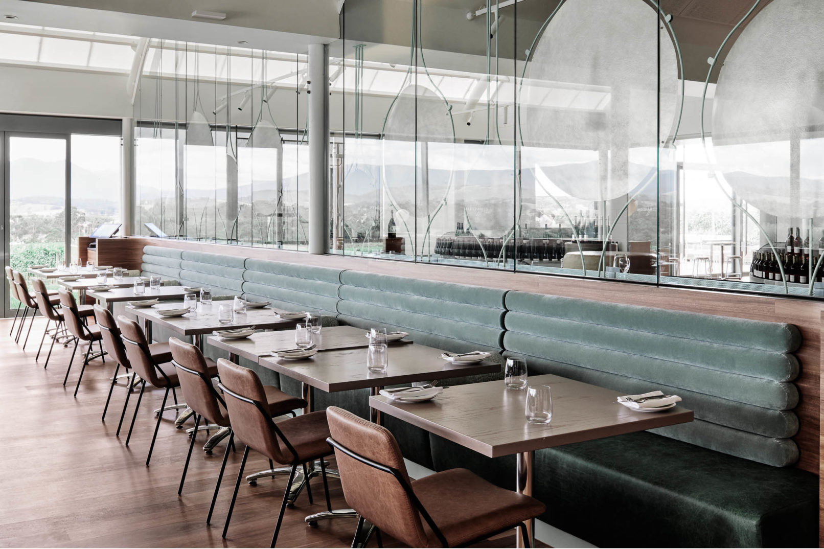 It was a pleasure to be working in our very own Yarra Valley backyard for one of Australia’s most treasured and iconic wineries, Domaine Chandon. The project brief was to create an atmosphere that achieved casual, unpretentious and fun, whilst at the same time was refined and elegant.