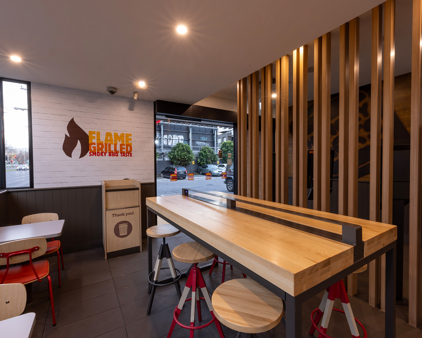 The Yarra Valley Commercial team transformed their fourth Hungry Jacks outlet on Melbourne’s Hoddle Street from a once-neglected space into a stylish dining hotspot. Beyond a mere cosmetic change, this ambitious project involved detailed interior overhauls, intricate steelwork, unique cladding, and a 6.5-meter elevation, emphasising significant architectural modifications.
