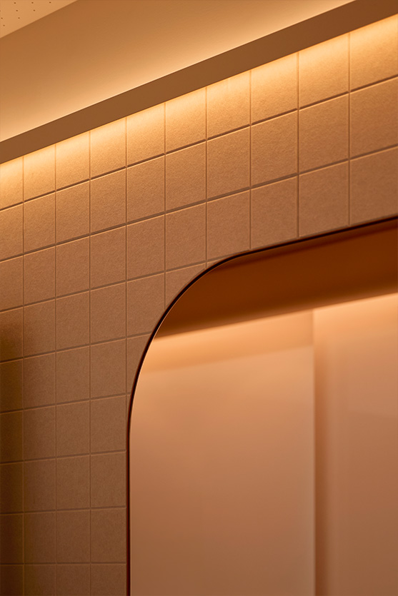 The transition from entry to studio is seamless, with cabinetry, flooring, and wall finishes all chosen to guide movement naturally through the space. The result is a reception and entry area that is both polished and highly functional, making a strong first impression for every client who steps inside.