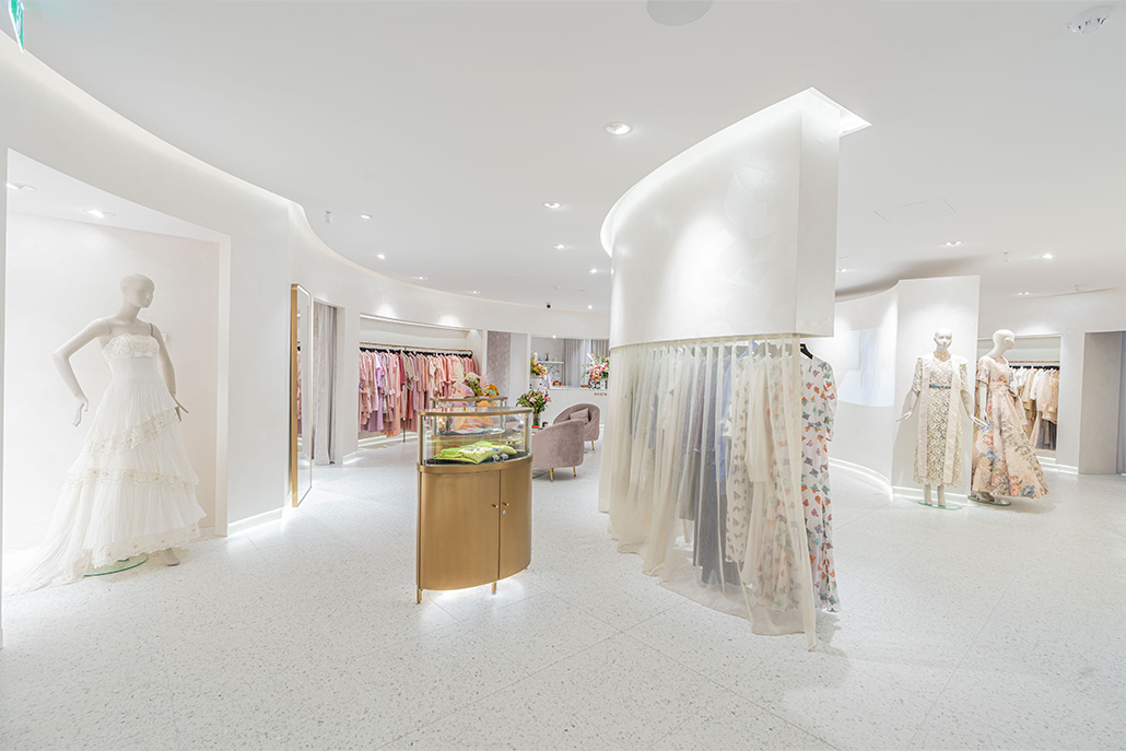 The curvature was always going to be a challenge. From the lighting to service desk, display cabinets to fitting rooms, couches, garment racks to mirrors, alcoves to artwork, not an angle to be seen. Like most challenges that are overcome, no better reward exists than the end result. An effortless floating space was acheived offering a boutique shopping experience for the discerning in boutique fashion.